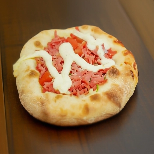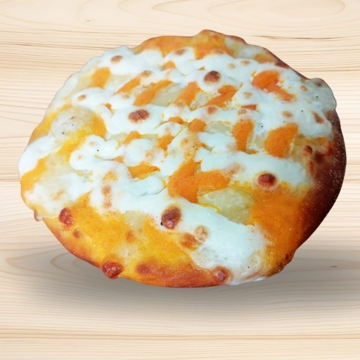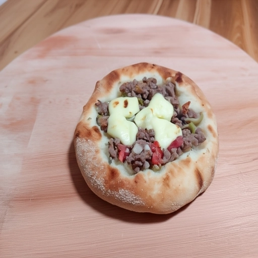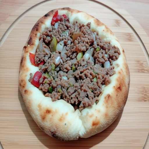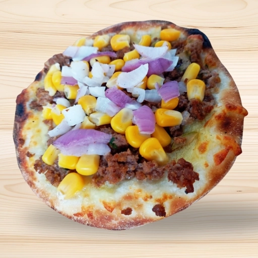 Mussarela,carne muida da casa, milho verde , cebola roxa.