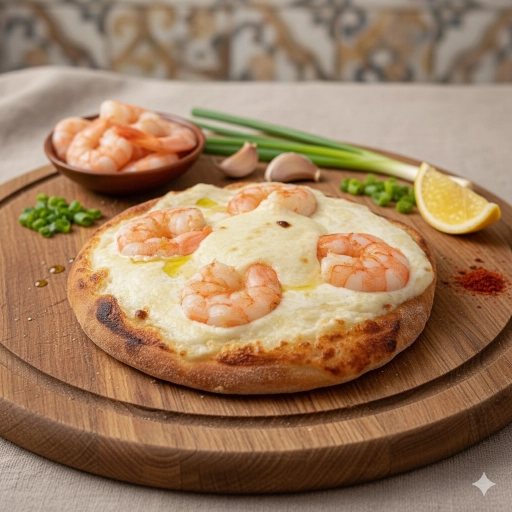 Massa artesanal,creme da chef,cream chesse, camarão grande.