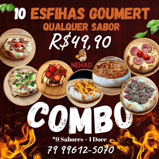 9 esfihas salgadas de qualquer sabor + 1 esfihas doce.