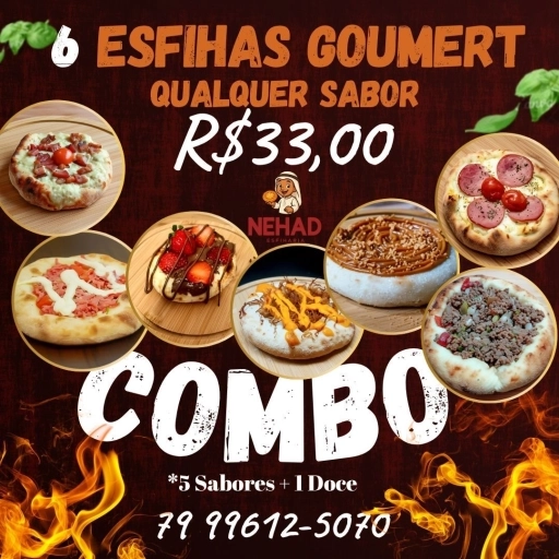 5 esfihas salgadas de qualquer sabor + 1 esfihas doce